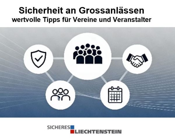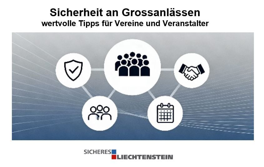 Der Verein Sicheres Liechtenstein lädt zur nächsten kostenlosen Informationsveranstaltung ein. Im Mittelpunkt steht dieses Mal die Sicherheit bei Grossanlässen. Die Veranstaltung richtet sich insbesondere an Vereine und Organisationen, die Anlässe durchführen. Sie erhalten praxisnahe Tipps und wichtige Informationen aus erster Hand, um ihre eigenen Veranstaltungen sicher und professionell zu planen.